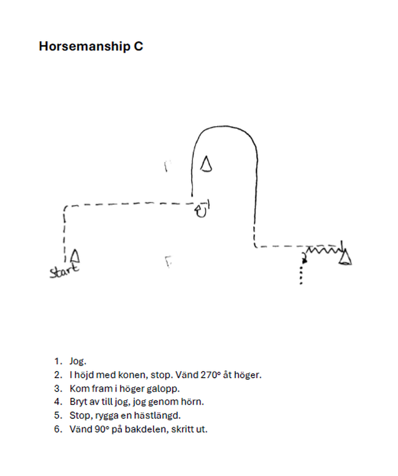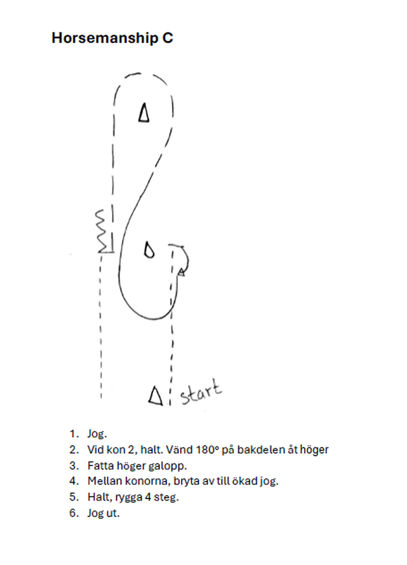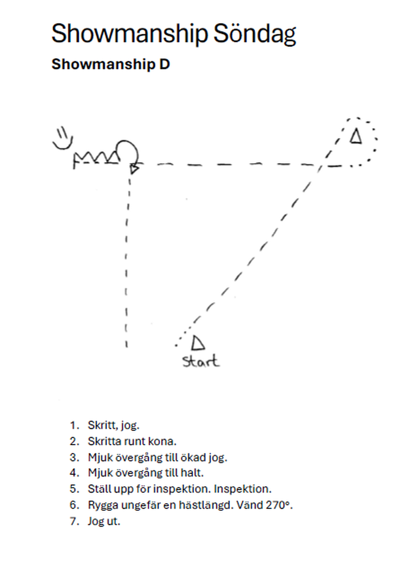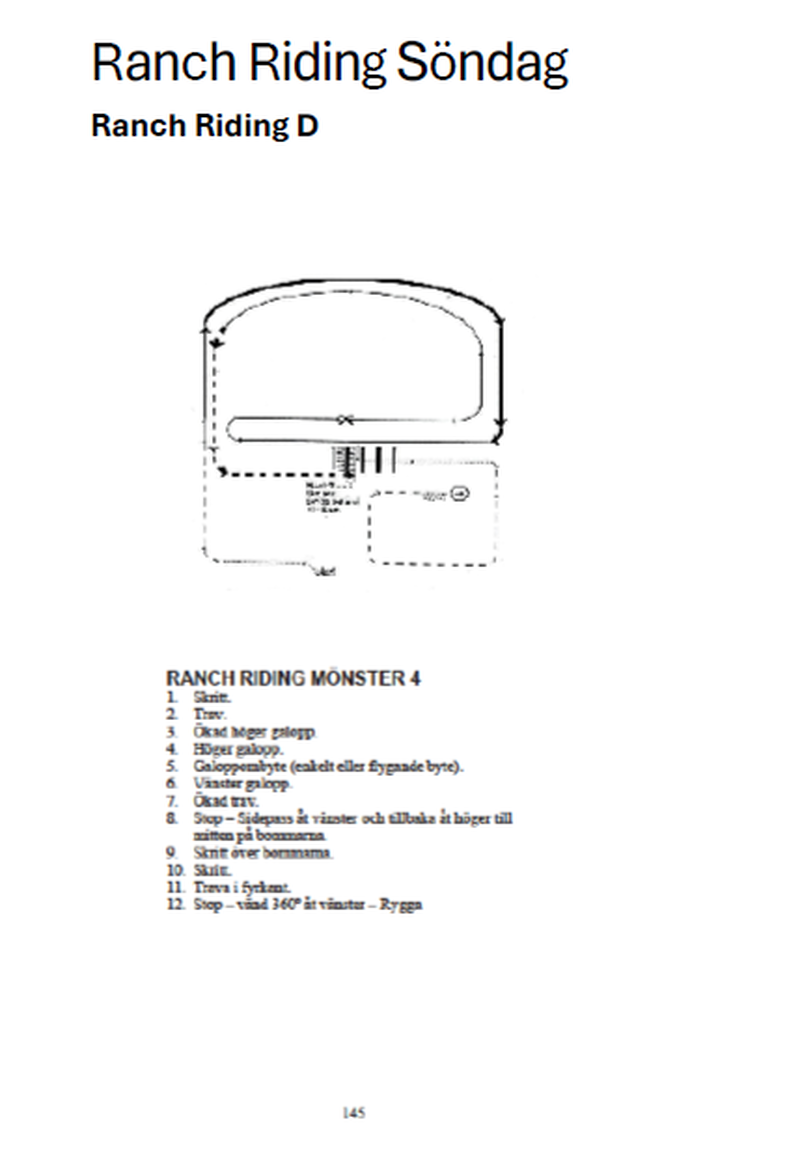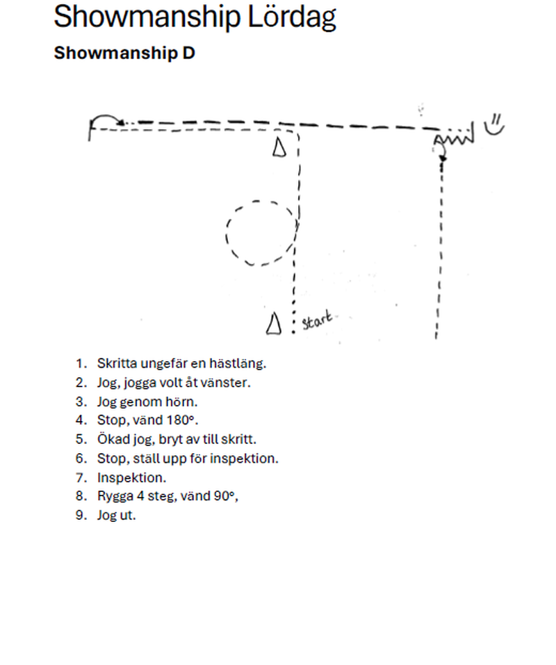 | 26 | Freestyle Reining D Open | Eget mönster. Pris till bästa utklädnad! Det är ok utan huvudlag, en eller två händer, byta hand etc. Ange så fort du kan vilken musik du vill ha... t ex låt på spotify eller egen fil så vi kan få ordning på allt innan tävlingen :-) Obligatoriska rörelser är minst 2 spins till höger och minst 2 spins till vänster, minst 2 stops. (Exempel se reiningmönster 12). (Du startar antingen D-nivå eller C-nivå, inte båda). | 50,- | 50,- | 0 | ||||||||||||||