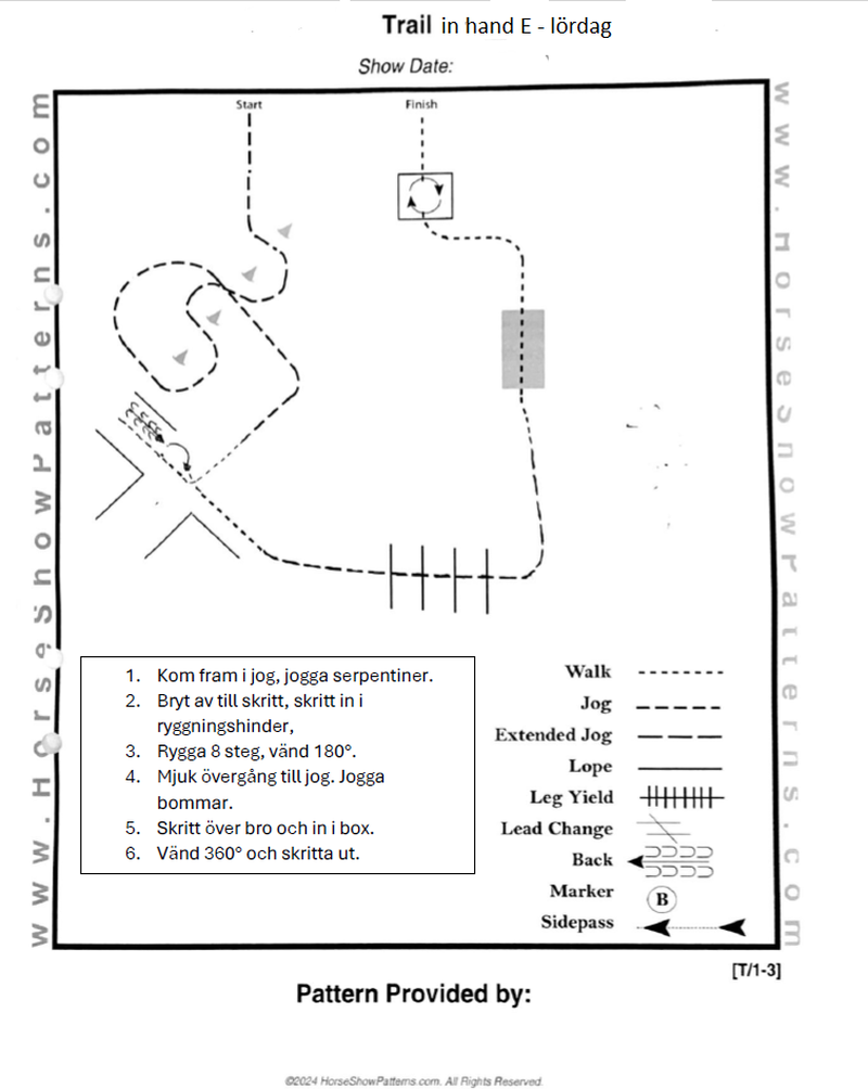 | 30 | Trail in Hand E | E-klasser är för ”prova-på-ekipage”. Ingen klubbtillhörighet eller licens i WRAS behövs. | Mönster | 150,- | 120,- | 0 | |||||||||||||
