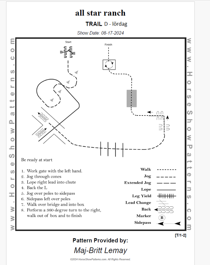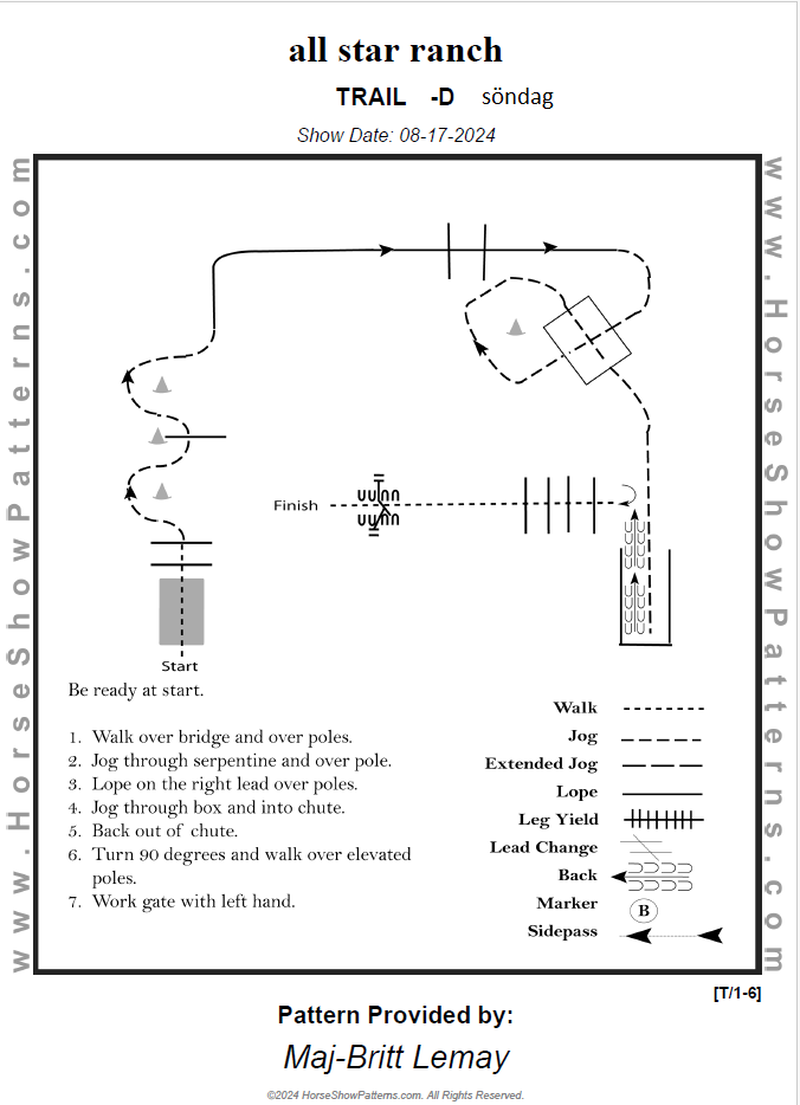 | 9 | Ranch Trail D Open | PS. Du blir inte bedömd på hur bra du kan kasta lasso :-) DS. | Mönster | 150,- | 120,- | 2 | |||||||||||||