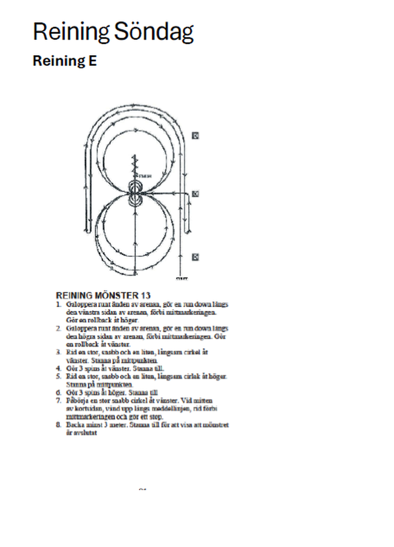 | 41 | Reining E | E-klasser är för ”prova-på-ekipage”. Ingen klubbtillhörighet eller licens i WRAS behövs. | Mönster | 150,- | 120,- | 0 | |||||||||||||